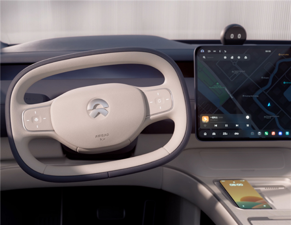 据蔚来此前介绍,蔚来ET9的线控转向是一种“全动力转向系统”,方向盘与转向轮之间0机械连接,通过电信号传递与控制,方向盘的角度和阻力矩可以自由设计,延迟更低、控制更精准,传递效率更高、布置更灵活。